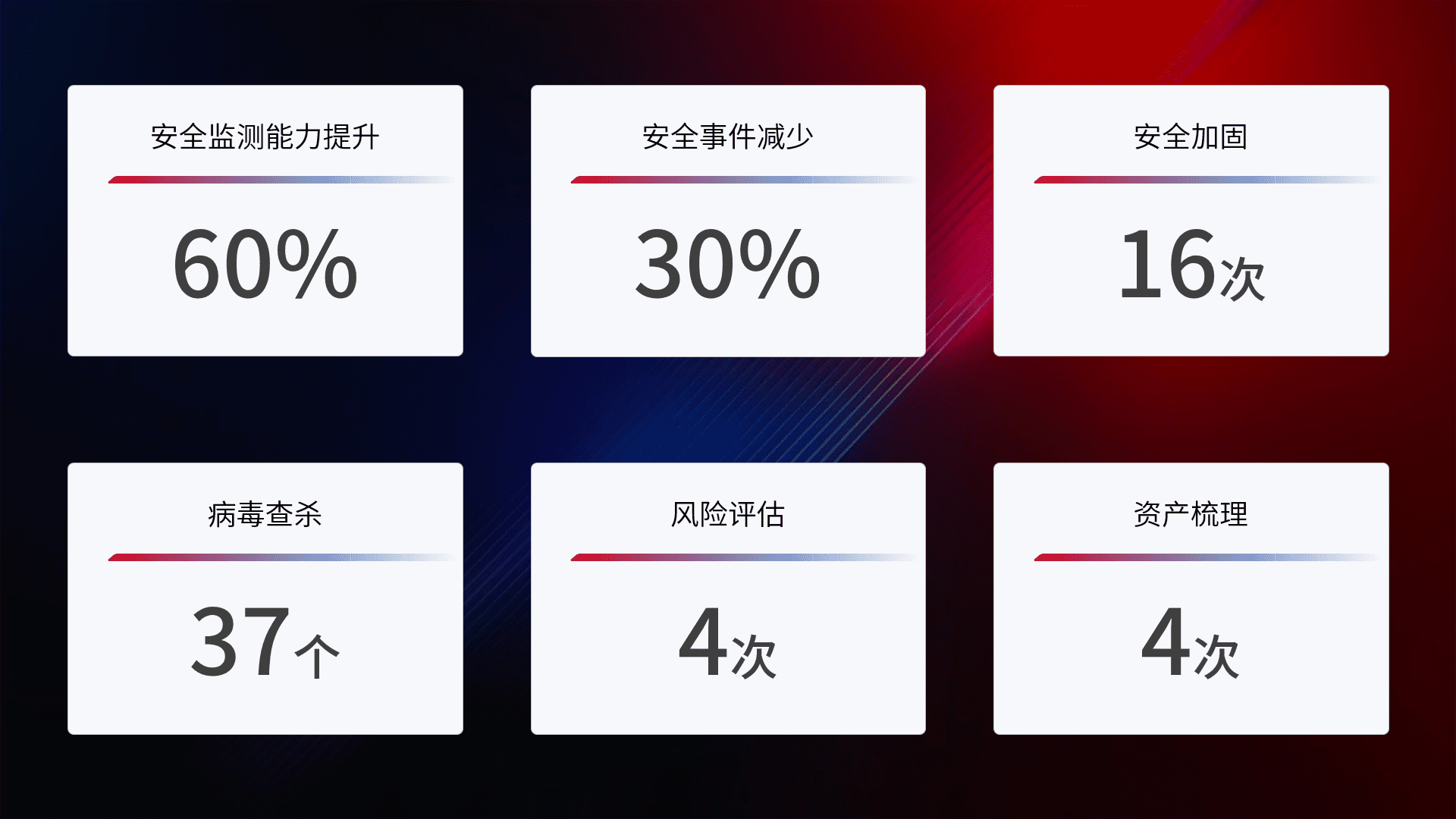 风险评估与技术培训:执行网络资产的季度风险评估,,,,包括漏洞扫描和基线核查。。为员工提供定期的安全意识及技术培训,,,,提高整体安全防护能力。。